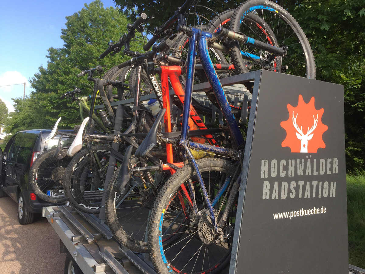 Der Radbus 222, der an den Wochenenden vom 1. Mai bis Anfang Oktober mehrmals täglich aus der Stadt Trier durch das Ruwertal in den Hochwald fährt, hält direkt vor unserer Haustür. In den Sommerferien fährt der Bus auch montags, mittwochs und freitags.